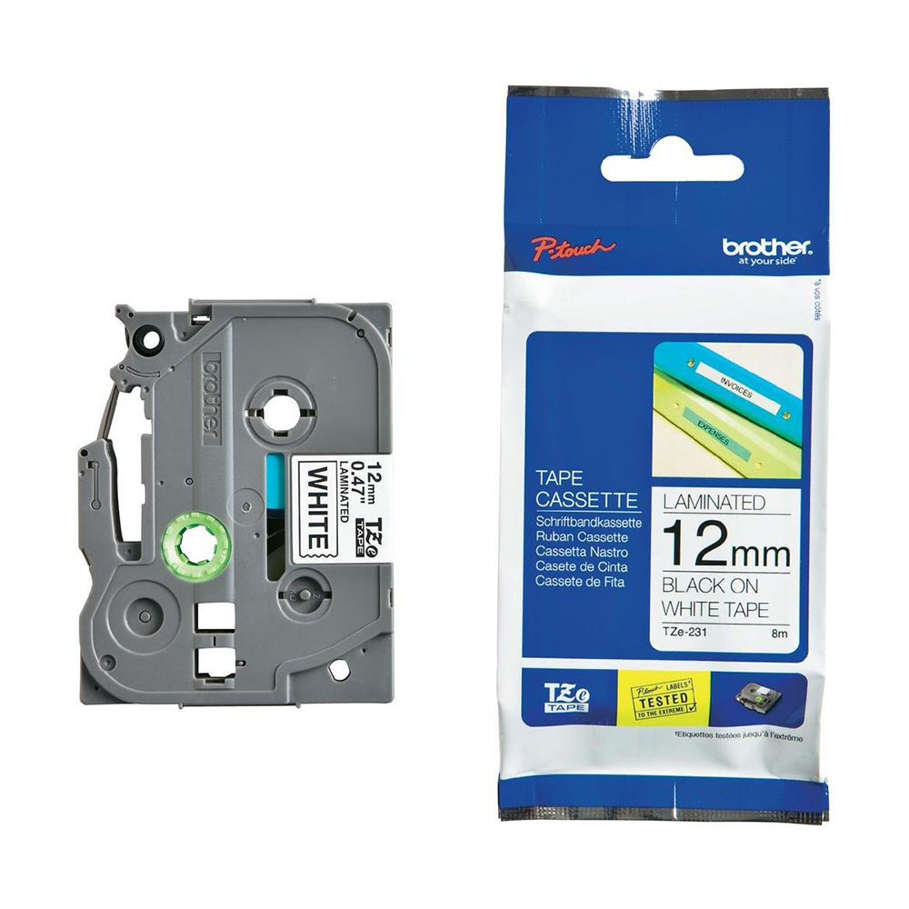 Brother TZE-231 Black ON White Laminated Tapes 12mm